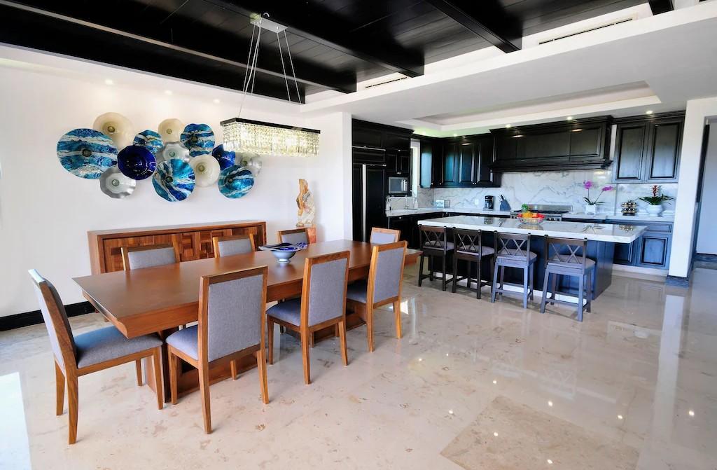 Your stay includes the coveted Punta Mita Premier Golf Membership (fees apply), providing access to private beach clubs, both Jack Nicklaus golf courses (Pacifico and Bahía), tennis courts, and more. The condo has been thoughtfully updated with a modern open-concept design, featuring a remodeled kitchen with an oversized island ideal for entertaining, serene bedrooms, and spectacular sunset views over the Pacific Ocean and Marietas Islands.