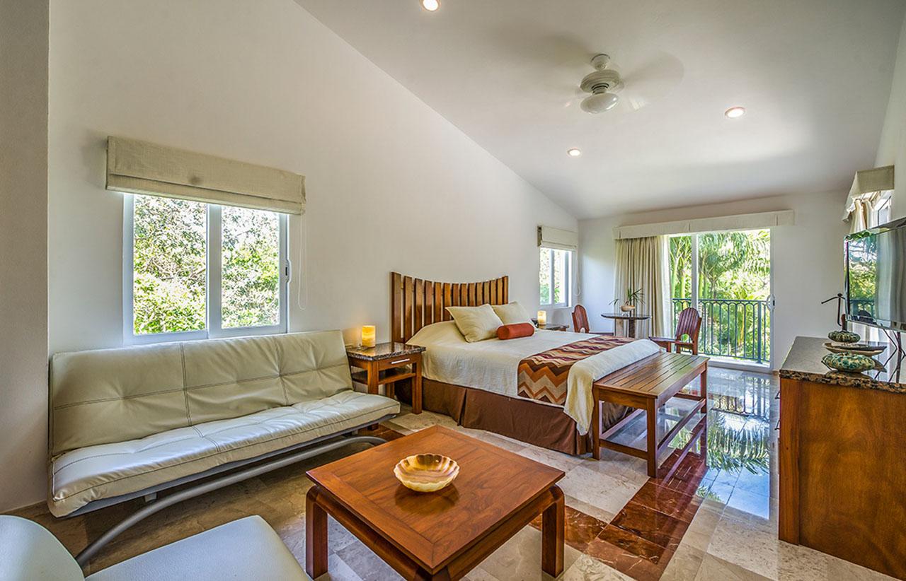 Enjoy the views of the garden and the pool from the rooftop terrace all from your comfortable resting chairs. All 3 bedroom balconies offer a view of the pool, garden, lush neighborhood vegetation and the golf course.