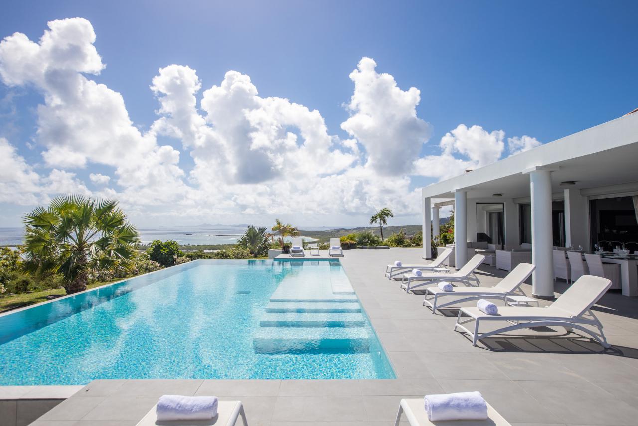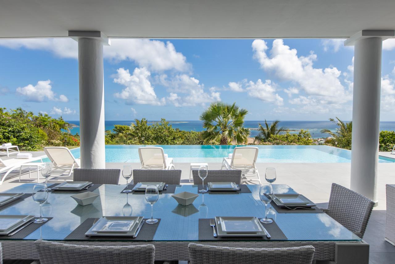 Villa Monte Verde is a stunning St. Martin vacation rental in Orient Bay. This four-bedroom St. Martin villa is located on a hillside and offers panoramic views of the Caribbean waters as far as the eye can see.